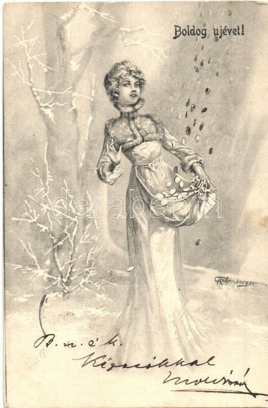 Boldog Újévet! / New Year greeting card, lady with money s: Rothenberg... https://www.darabanth.com/de/282-Fernauktion/282.0/Ansichtskarten/GruC39Fkarten-Feste~200086/Boldog-Ujevet-New-Year-greeting-card-lady-with-money-s-Rothenberger-EK~II1454798