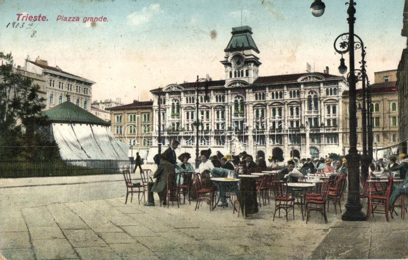 Trieste, Piazza grande / square, cafe terrace https://www.darabanth.com/de/282-Fernauktion/282.0/Ansichtskarten/Italien~200055/Trieste-Piazza-grande-square-cafe-terrace~II1458350