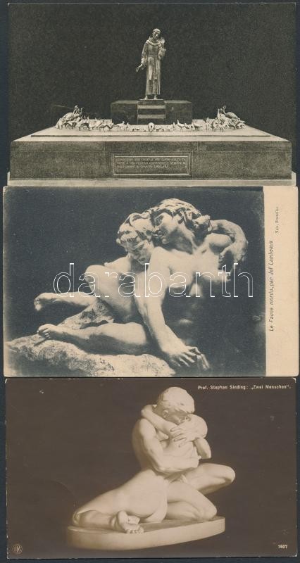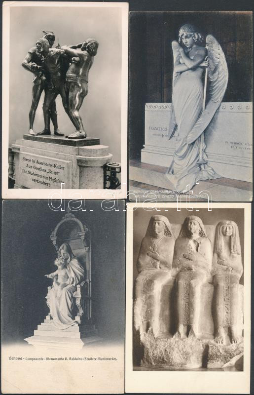 Kb. 100 db főleg használatlan RÉGI művészlap szobrokról, vegyes minőség / Cca. 100 mostly unused pre-1945 art postcards with statues, sculptures, mixed quality