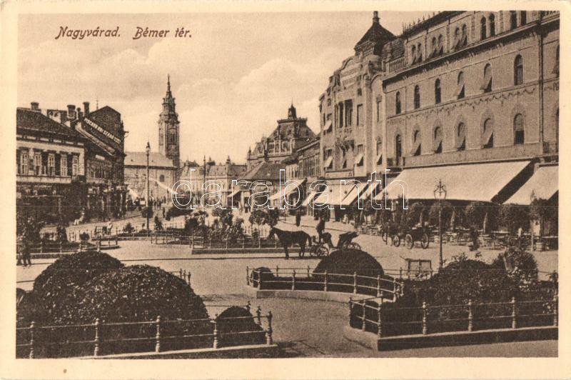 Nagyvárad, Oradea; Bémer tér, Fischer úri szabó / square https://www.darabanth.com/de/282-Fernauktion/282.0/Ansichtskarten/Siebenburgen~200008/Nagyvarad-Oradea-Bemer-ter-Fischer-uri-szabo-square~II1458607