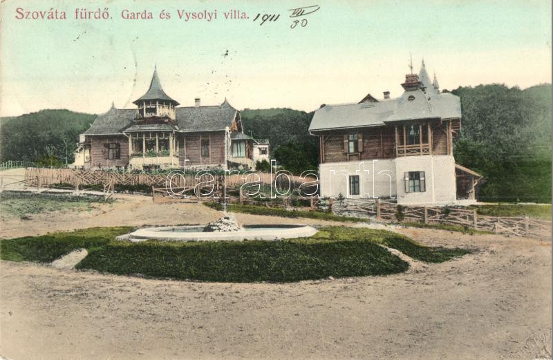 Szovátafürdő, Sovata; Garda és Vysolyi villák, Dragoman S. J. kiadása ... https://www.darabanth.com/de/282-Fernauktion/282.0/Ansichtskarten/Siebenburgen~200008/Szovatafurdo-Sovata-Garda-es-Vysolyi-villak-Dragoman-S-J-kiadasa-villas~II1458718