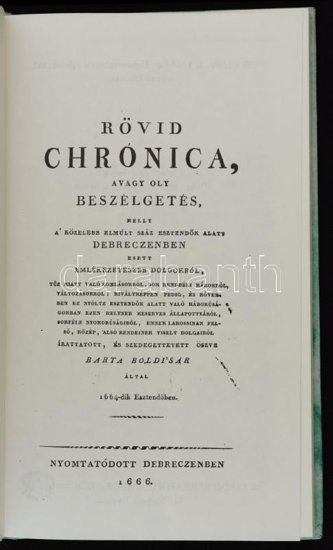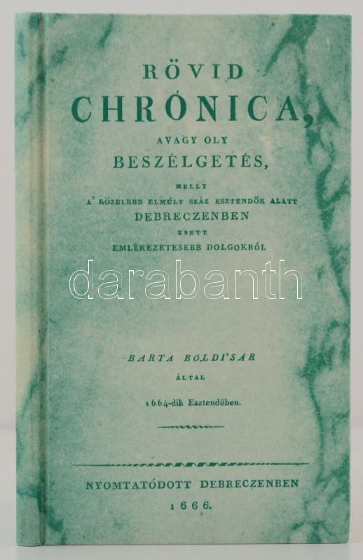 Barta Boldizsár: Rövid chronica. Debrecen, é. n., Barnaföldi Gábor. Az... https://www.darabanth.com/de/282-Fernauktion/282.0/Bucher/Bucher-Geschichte~20/Barta-Boldizsar-Rovid-chronica-Debrecen-e-n-Barnafoldi-Gabor-Az-1666-evi-kiadas-repri~II1457465