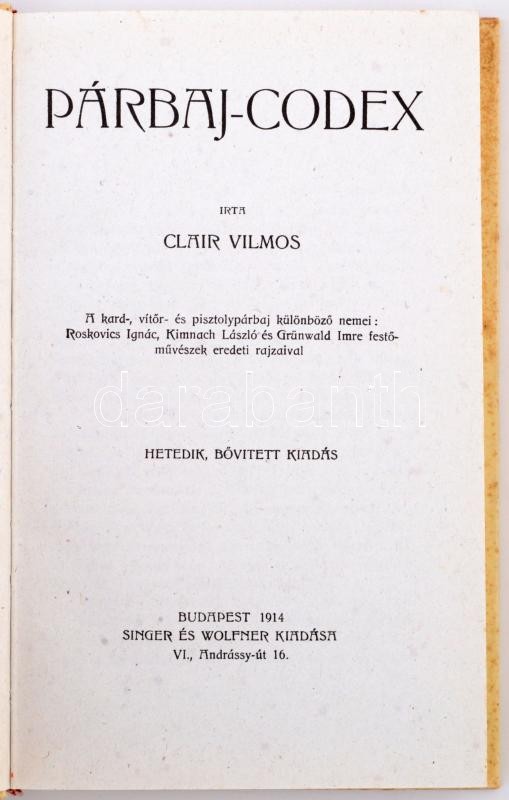 Clair Vilmos: Párbaj-codex. Budapest, 1992, Móra. Hasonmás kiadás. Ki... https://www.darabanth.com/de/282-Fernauktion/282.0/Bucher/Bucher-Militaria~23/Clair-Vilmos-Parbaj-codex-Budapest-1992-Mora-Hasonmas-kiadas-Kiadoi-kartonalt-papirko~II1445078