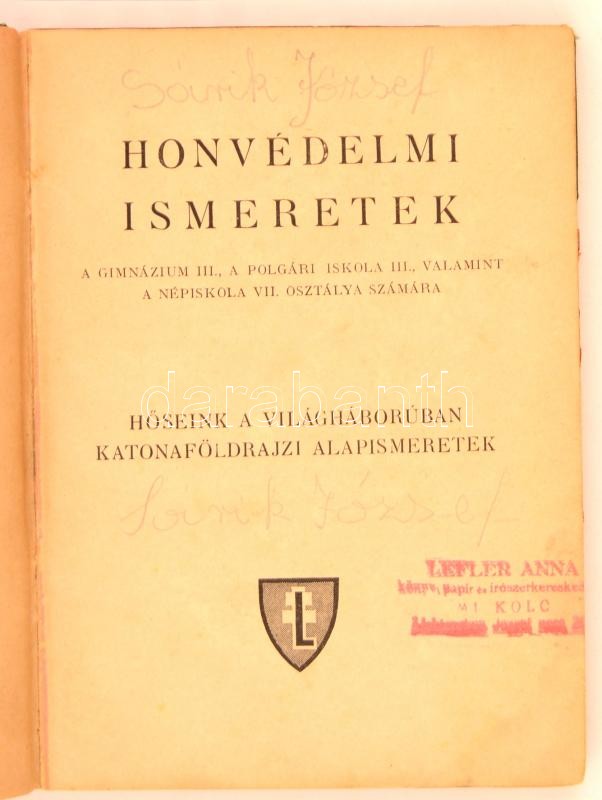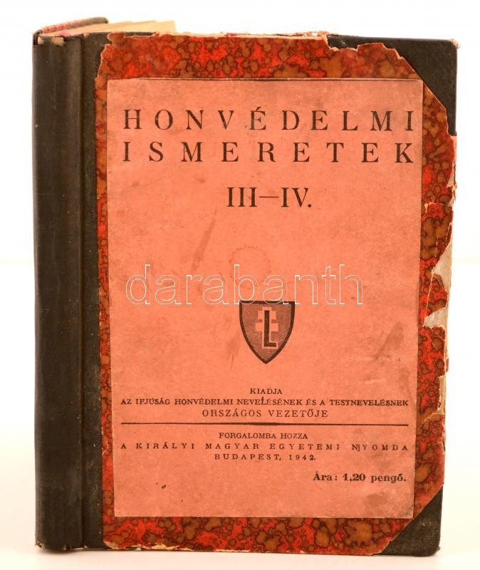 Honvédelmi ismeretek III-IV. Budapest, 1942, Királyi Magyar Egyetemi Nyomda. Kopottas félvászon kötés. Az egyik oldal ragasztott, a kötése laza. Megviselt állapotban. Fekete-fehér fotókkal, és térképekkel illusztrálva.