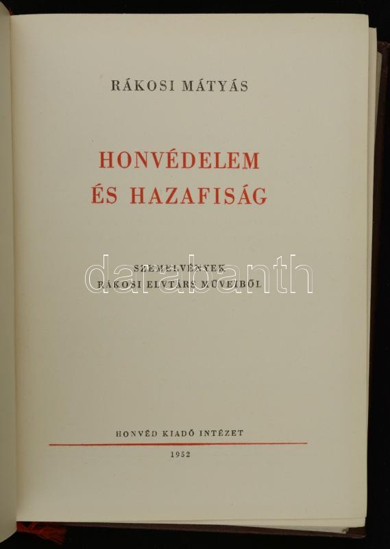 Rákosi Mátyás: Honvédelem és hazafiság. Budapest,1952, Honvéd Kiadói I... https://www.darabanth.com/de/282-Fernauktion/282.0/Bucher/Bucher-Militaria~23/Rakosi-Matyas-Honvedelem-es-hazafisag-Budapest-1952-Honved-Kiadoi-Intezet-Kiadoi-eges~II1456229