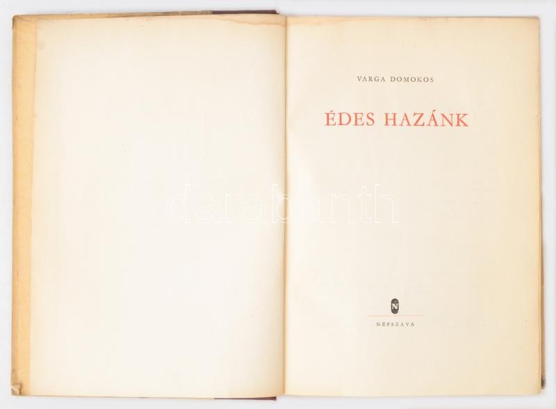Varga Domokos: Édes hazánk. Budapest, 1994, Népszava. Kiadói félvászon kötés, fekete-fehér fotókkal illusztrálva, foltos borítóval, ajándékozási sorokkal.
