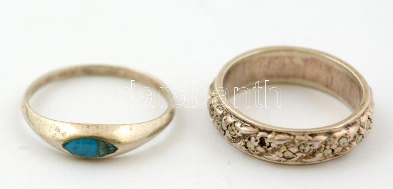 Beschreibung: Ezüst(Ag) 2 db gyűrű, egyiken markazit berakással, jelzett, méret: 50 és 51, bruttó: 4,3 g