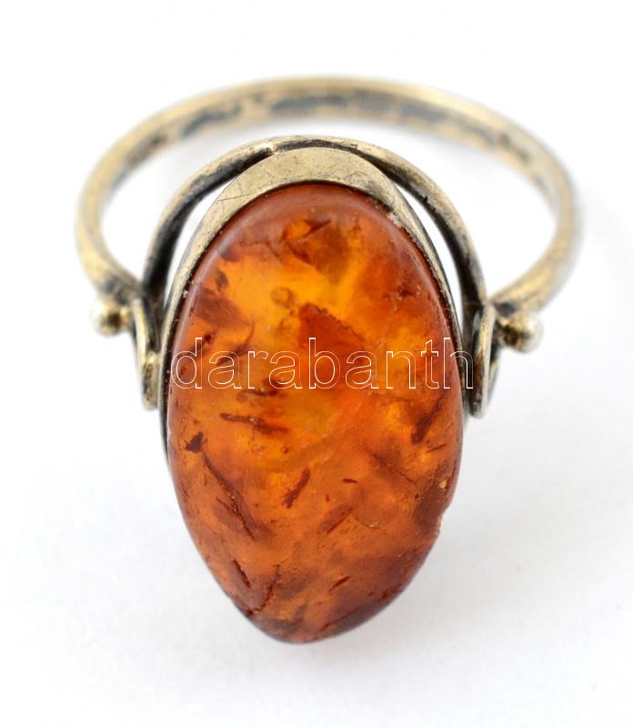 Ezüst(Ag) gyűrű borostyán kővel, jelzett, méret: 58, bruttó: 3,7 g https://www.darabanth.com/de/282-Fernauktion/282.0/Juwelen/Juwelen~300020/EzustAg-gyuru-borostyan-kovel-jelzett-meret-58-brutto-3-7-g~II1458735