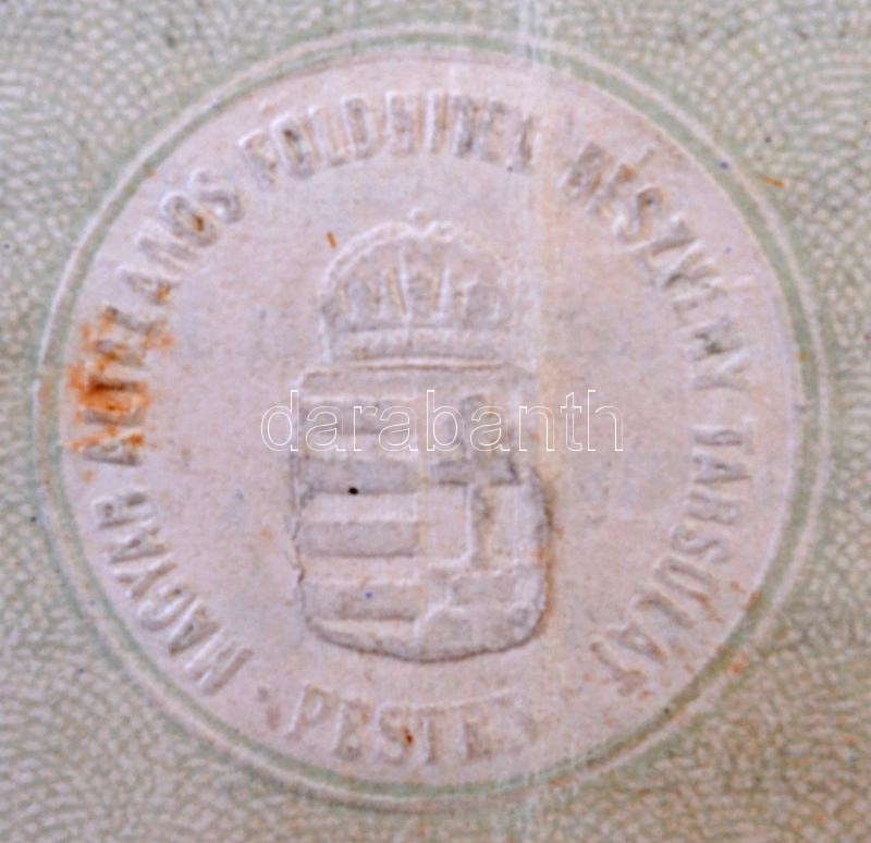 Budapest / Pest 1875. "Magyar Általános Földhitel-Részvény-Társul... https://www.darabanth.com/de/282-Fernauktion/282.0/Numismatik/Aktien-und-Tickets~300004/Budapest-Pest-1875-Magyar-Altalanos-Foldhitel-Reszveny-Tarsulat-625-os-zaloglevele-100Ft-~II1411337