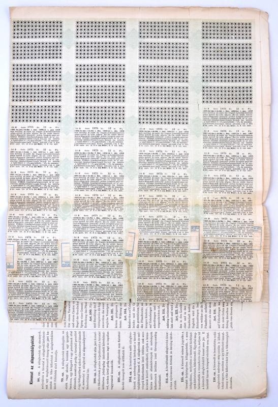 Beschreibung: Budapest / Pest 1875. "Magyar Általános Földhitel-Részvény-Társulat" 6%-os záloglevele 100Ft-ról, szárazpecséttel, bélyegzéssel, 2x15k okmánybélyeggel T:III szakadás