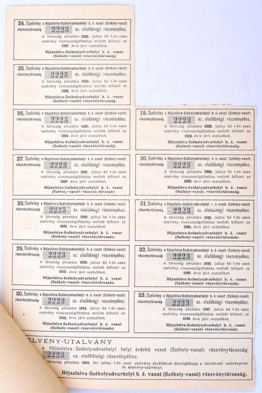 Székelyudvarhely 1894. "Héjasfalva-Székelyudvarhelyi H.É.V. (Szék... https://www.darabanth.com/de/282-Fernauktion/282.0/Numismatik/Aktien-und-Tickets~300004/Szekelyudvarhely-1894-Hejasfalva-Szekelyudvarhelyi-HEV-Szekely-vasut-ReszvenytarsasC3~II1458924
