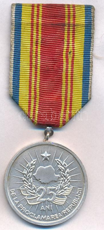 Románia 1972. "A Köztársaság kikiáltásának 25. évfordulója" ezüstözött Br emlékérem mellszalagon T:2 ph.