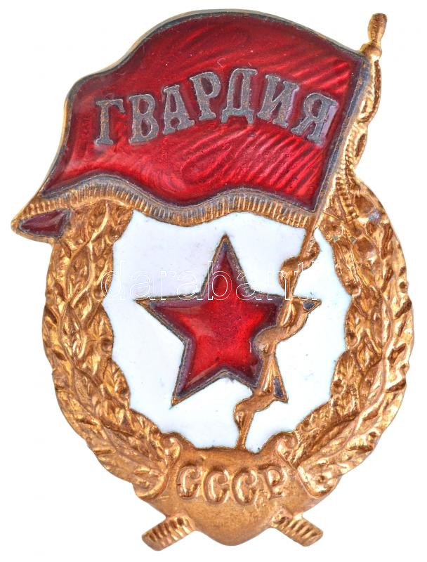 Szovjetunió ~1960-1970. "Szovjet Gárda jelvény" aranyozott, zománcozott fém jelvény csavaros hátlappal (48x36mm) T:2