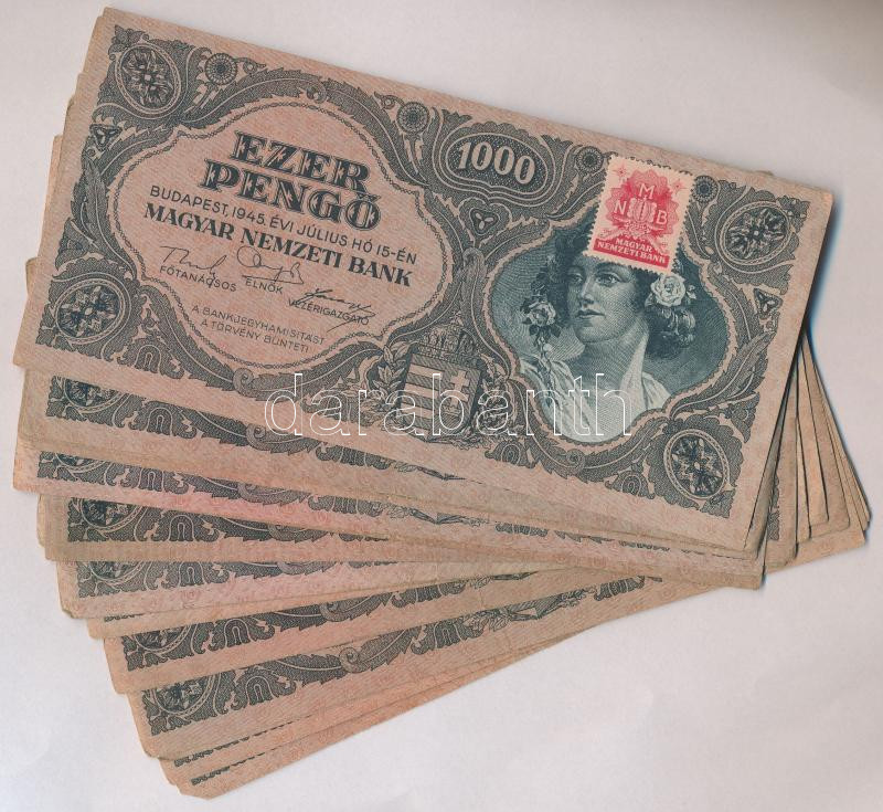Beschreibung: 1945. 1000P (30x) mind piros "MNB" bélyeggel T:I--III