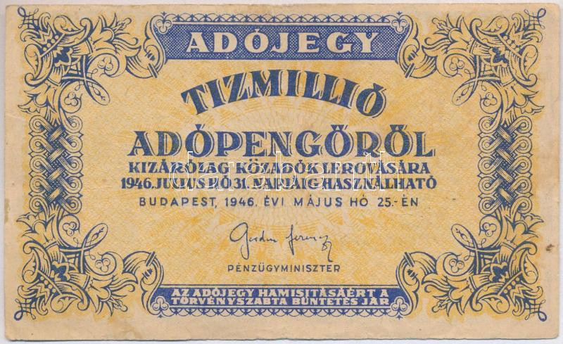 1946. 10.000.000AP fordított címerrel T:III,III-