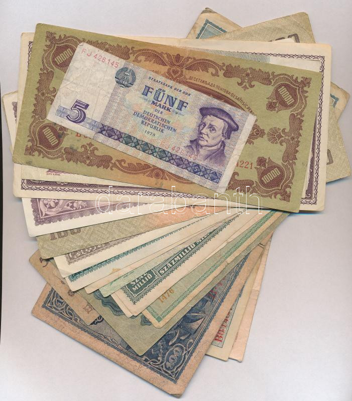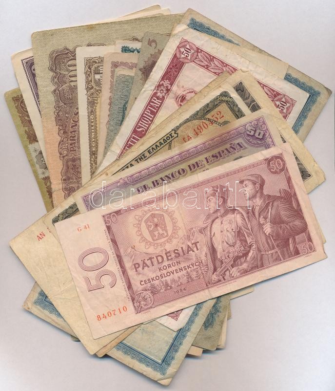 Beschreibung: Vegyes 27db-os papírpénz tétel, nagyobbrészt magyar, valamint görög, spanyol, csehszlovák és lengyel bankjegyek T:II-III-