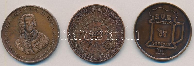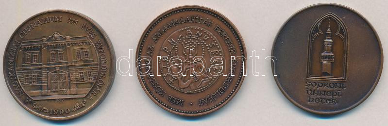 Beschreibung: 1987. "Sör Fesztivál Sopron / Soproni Ünnepi Hetek" Br emlékérem (42,5mm) + 2000. "MÉE - Államalapítás ezredik évfordulója - Szent István" Br emlékérem (42,5mm) + 1990. "Nagykanizsai Gimnázium 225 éves évfordulójára 1990 / Gróf Batthyány Lajos nádor, az iskola alapítója 1765" Br emlékérem (42,5mm) T:2
