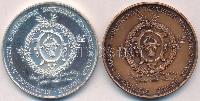 1994. "Balassi Bálint halálának 400. évfordulója / Életünket, amellyel sorsunknak tartozunk, fordítsuk a haza üdvére" Ag és Br emlékérem pár. Szign.: FV (36,65g/0.925/42,5mm) T:1(PP) ujjlenyomat, kis fo.