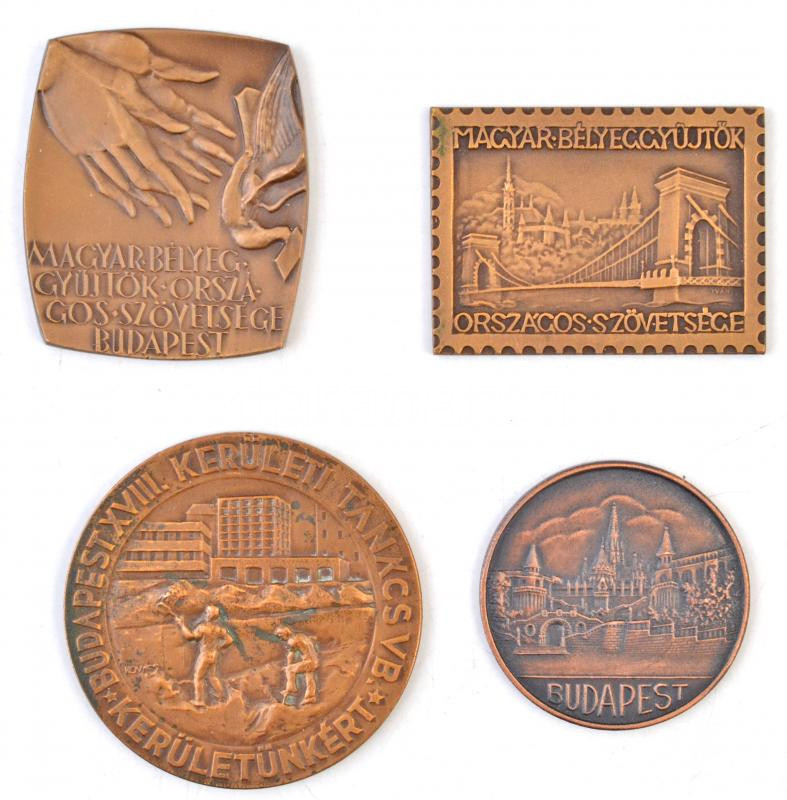 7db-os Budapest emlékérem és plakett tétel: ~1986. "Budapest", DN "Budapest XVIII. kerületi Tanács VB - Kerületünkért", "Pekár Imre / Gabonatröszt", 1978. "A Kommunisták Magyarországi Pártja megalakulásának 60. évfordulójára", "MHRT - Hűségért - Munkáért", "Magyar Bélyeggyűjtők Országos Szövetsége" (2xklf) T:2