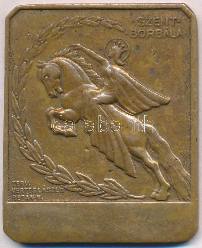Beschreibung: Vértes László / Berán Nándor (1889-1965) DN "Szent Borbála" Br emlékplakett (64,5x53mm) T:2-