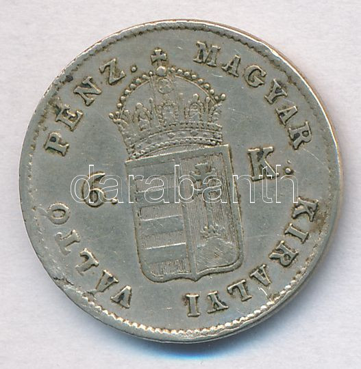 Adamo B3 https://www.darabanth.com/de/282-Fernauktion/282.0/Numismatik/Ungarische-Munzen-und-Munzen-mit-ungarischem-Munzzeichen~300007/1849NB-6kr-Ag-T2-kis-ph---Adamo-B3~II1454641