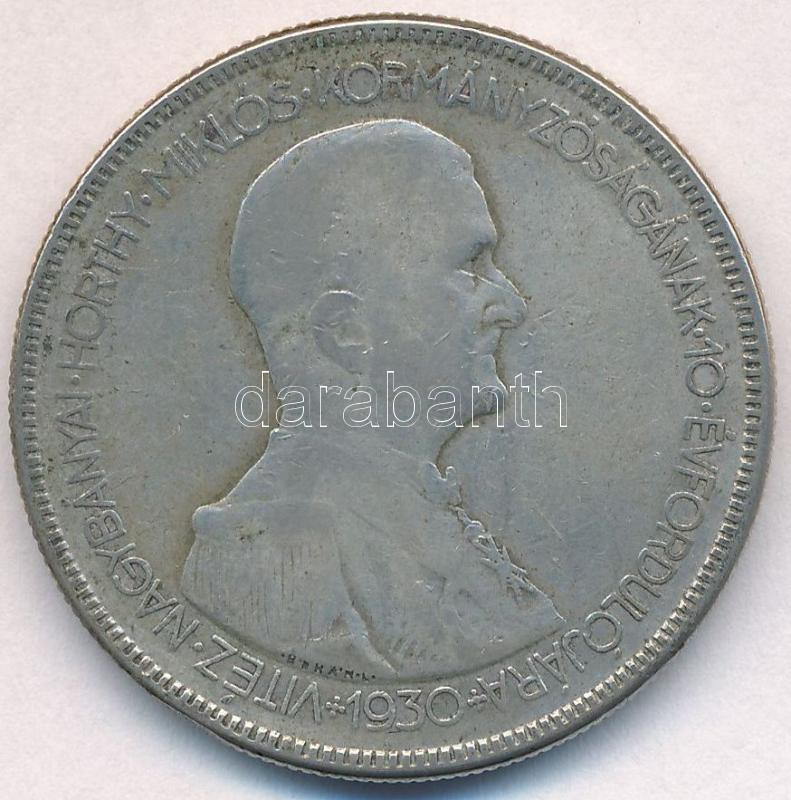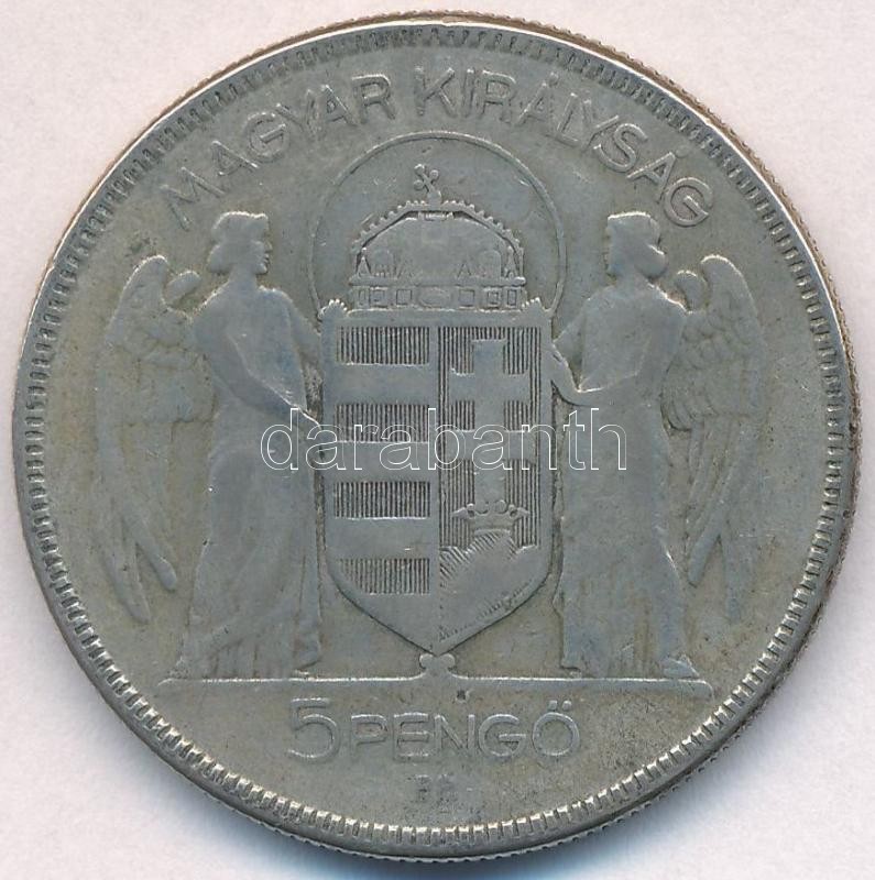Beschreibung: 1930. 5P Ag "Horthy jobbra" T:3 kis ph.