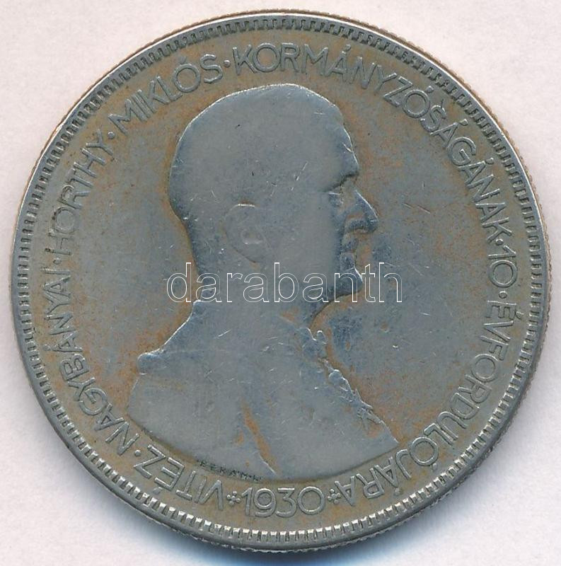 1930. 5P Ag "Horthy jobbra" T:3 patina