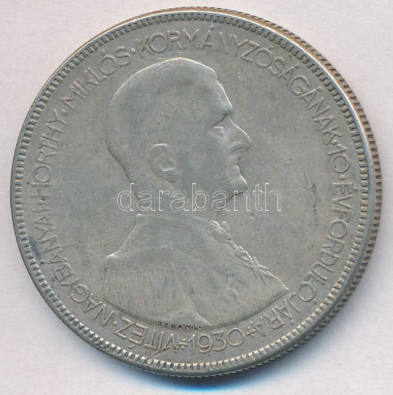 1930. 5P Ag "Horthy jobbra" T:3 https://www.darabanth.com/de/282-Fernauktion/282.0/Numismatik/Ungarische-Munzen-und-Munzen-mit-ungarischem-Munzzeichen~300007/1930-5P-Ag-Horthy-jobbra-T3~II1453997