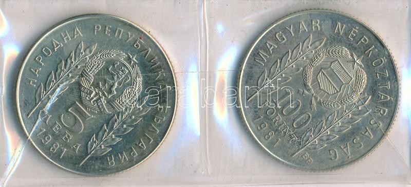 1981. 100Ft Cu-Ni + 5L Cu-Ni "Bulgária 1300 éves" magyar-bol... https://www.darabanth.com/de/282-Fernauktion/282.0/Numismatik/Ungarische-Munzen-und-Munzen-mit-ungarischem-Munzzeichen~300007/1981-100Ft-Cu-Ni-plus-5L-Cu-Ni-Bulgaria-1300-eves-magyar-bolgar-kozos-kiadas-eredeti-tokban-~II1460456