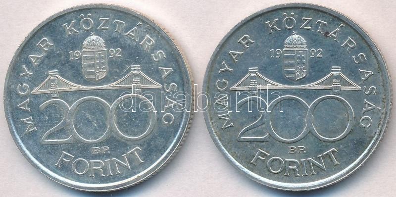 1992. 200Ft Ag "MNB" (2x) T:2 https://www.darabanth.com/de/282-Fernauktion/282.0/Numismatik/Ungarische-Munzen-und-Munzen-mit-ungarischem-Munzzeichen~300007/1992-200Ft-Ag-MNB-2x-T2~II1459764