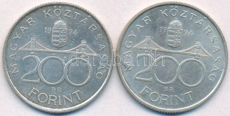 1994. 200Ft Ag "Deák" (2x) T:2 apró ü. és karc https://www.darabanth.com/de/282-Fernauktion/282.0/Numismatik/Ungarische-Munzen-und-Munzen-mit-ungarischem-Munzzeichen~300007/1994-200Ft-Ag-Deak-2x-T2-apro-u-es-karc~II1459829