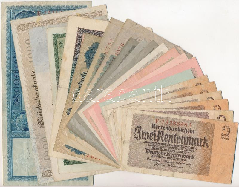 Német Birodalom / Weimari Köztársaság / Német 3. Birodalom 1910-1937. 22db-os vegyes német bankjegy tétel T:III,III-