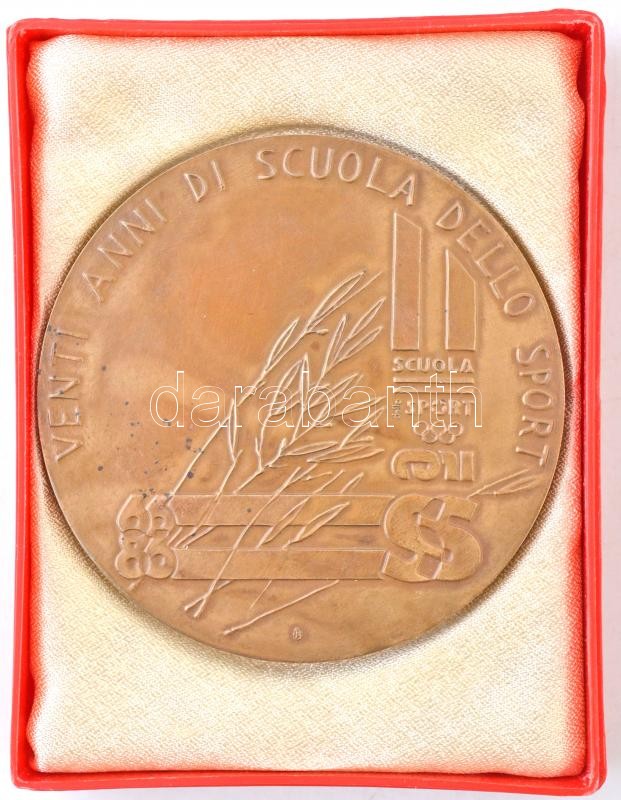 Olaszország 1986. "Venti anni di Scuola dello Sport (20 éves a Sportiskola)" Br plakett, tokban. Szign.: Morsani (69,5mm) T:2 Italy 1986. "Venti anni di Scuola dello Sport (20th Anniversary of the School of Sport" Br plaque in plastique case. Sign.: Morsani (69,5mm) C:XF