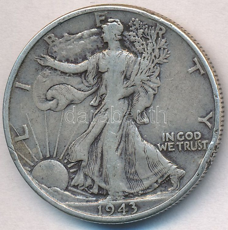 Amerikai Egyesült Államok 1943. 1/2$ Ag "Walking Liberty" T:... https://www.darabanth.com/de/282-Fernauktion/282.0/Numismatik/Weltweit-Munzen~300012/Amerikai-Egyesult-Allamok-1943-12USD-Ag-Walking-Liberty-T2-ph--USA-1943-12-Dollar-Ag-Walki~II1442899