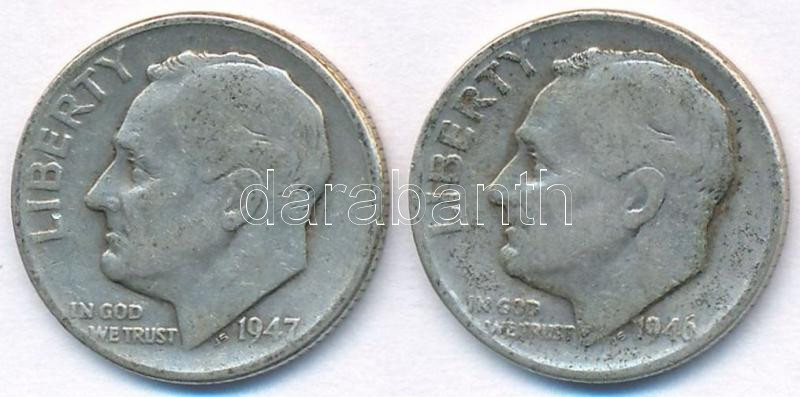 Amerikai Egyesült Államok 1946-1947. 1D Ag "Roosevelt" (2x) T:2- USA 1946-1947. 1 Dime Ag "Roosevelt" (2x) C:VF
