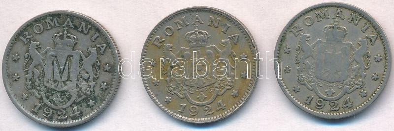 Románia 1924. 1L Cu-Ni (3x) 2db klf, egyiknek előlapján "M", hátlapján pedig "D" beütéssel T:2,2- Romania 1924. 1 Leu Cu-Ni (3x) 2pcs diff, one with "M" mark on obverse and "D" mark on reverse C:XF,VF