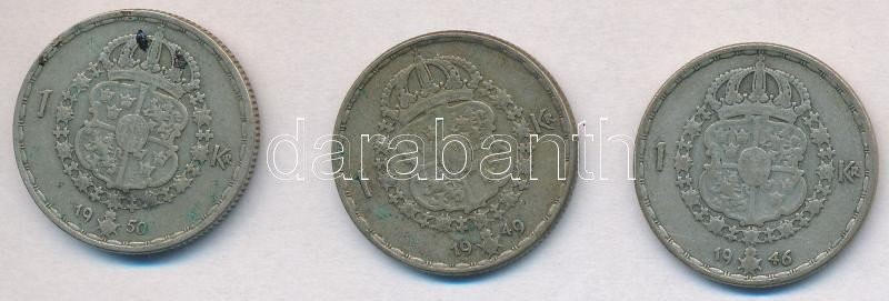 Beschreibung: Svédország 1946TS-1950TS 1Kr Ag "V. Gusztáv" (3xklf) T:2- patina