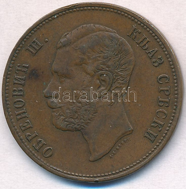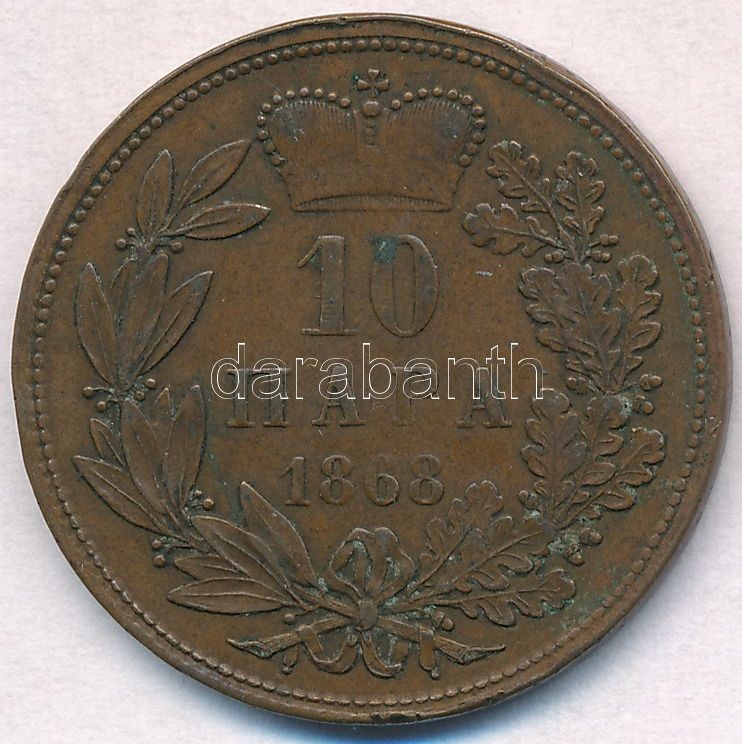 Szerbia 1868. 10p Br "III. Mihály" T:2 ph. Serbia 1868. 10 Para Br "Michael III" C:XF edge error