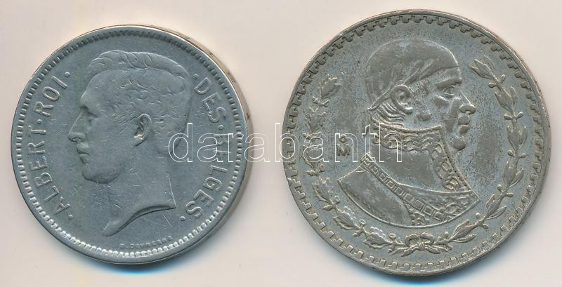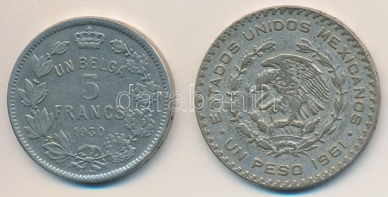 Vegyes: Belgium 1930. 5Fr Ni "Albert" + Mexikó 1961. 1P Ag T:2,2- Mixed: Belgium 1930. 5 Francs Ni "Albert" + Mexico 1961. 1 Peso Ag C:XF,VF Krause KM#97.1, KM#459