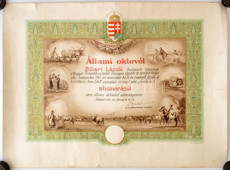 1944 Galambtenyésztők Országos Egyesülete nagyméretű oklevél, szép áll... https://www.darabanth.com/de/283-Fernauktion/283.0/Andere-Sammelgebiete/Dokument~17/1944-Galambtenyesztok-Orszagos-Egyesulete-nagymeretu-oklevel-szep-allapotban-52x66-cm~II1373935