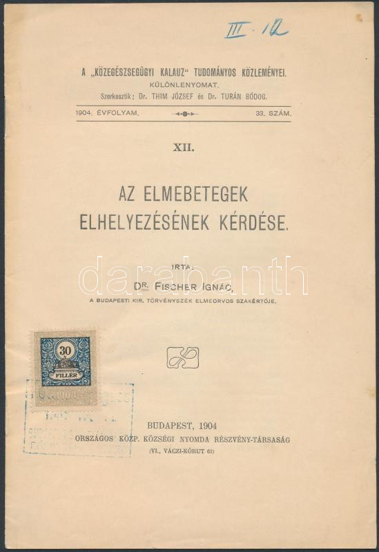 1904 Dr. Fischer Ignác: Az elmebetegek elhelyezésének kérdése, A Közeg... https://www.darabanth.com/de/283-Fernauktion/283.0/Andere-Sammelgebiete/Drucksachen~28/1904-Dr-Fischer-Ignac-Az-elmebetegek-elhelyezesenek-kerdese-A-Kozegeszsegugyi-Kalauz-Tud~II1464342