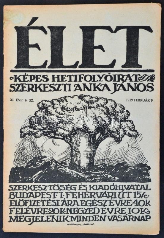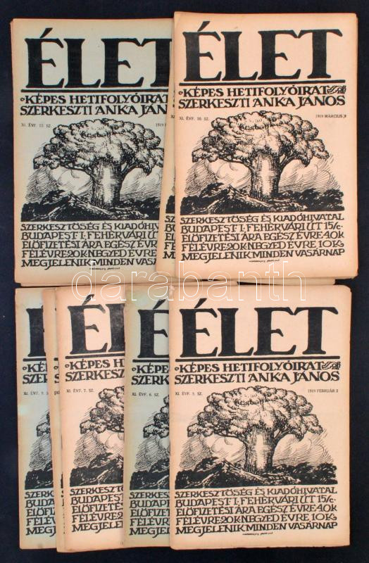 1919. Élet - Képes heti folyóirat - Szerkeszti Anka János. XI: évfolyam 5-13. számok. Az őszirózsás forradalom és a Tanácsköztársaság napjaiból. Haranghy Jenő illusztrált címlapjával