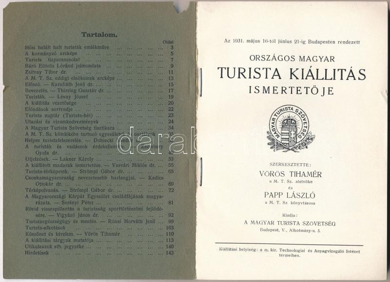 1931 Vörös Tihamér(szerk.): Országos Magyar Turista Kiállítás ismertet... https://www.darabanth.com/de/283-Fernauktion/283.0/Andere-Sammelgebiete/Drucksachen~28/1931-Voros-Tihamerszerk-Orszagos-Magyar-Turista-Kiallitas-ismertetoje-kiadoi-papirko~II1464645