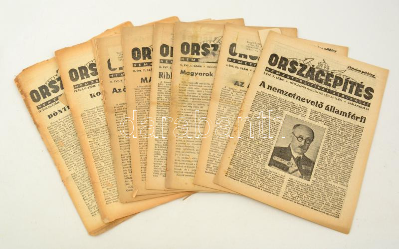 1941-44 Országépítés, Nemzetpolitikai Szolgálat 8 száma (I. évf. 7.,23., II. évf. 1.,2.,7.,8.,IV. évf. 11.,12.), benne számos irredenta témájú cikkekkel, változó állapotban,