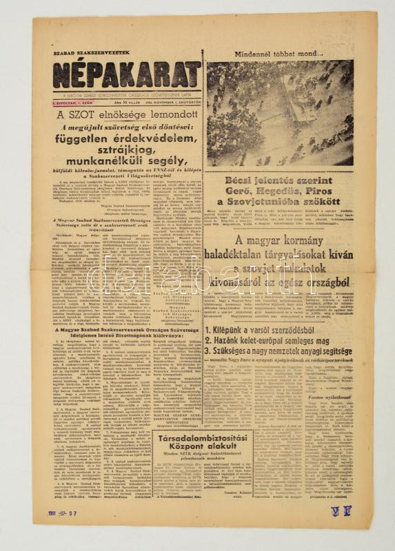1956 Népakarat. A Magyar Szabad Szakszervezetek Országos Szövetségének... https://www.darabanth.com/de/283-Fernauktion/283.0/Andere-Sammelgebiete/Drucksachen~28/1956-Nepakarat-A-Magyar-Szabad-Szakszervezetek-Orszagos-Szovetsegenek-Lapja-1956-november-1-~II1466321