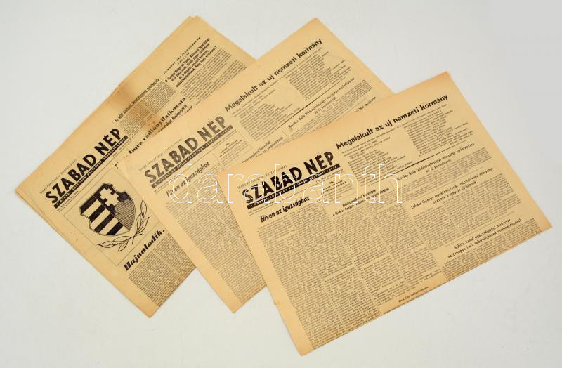 1956 Szabad Nép. Magyar Dolgozók Pártjának központ lapja, 3 szám, 1956. október 28., 29.x2, XIV. évfolyam, 296.x 2, 297. számok, benne a forradalom híreivel, szakadozott állapotban.
