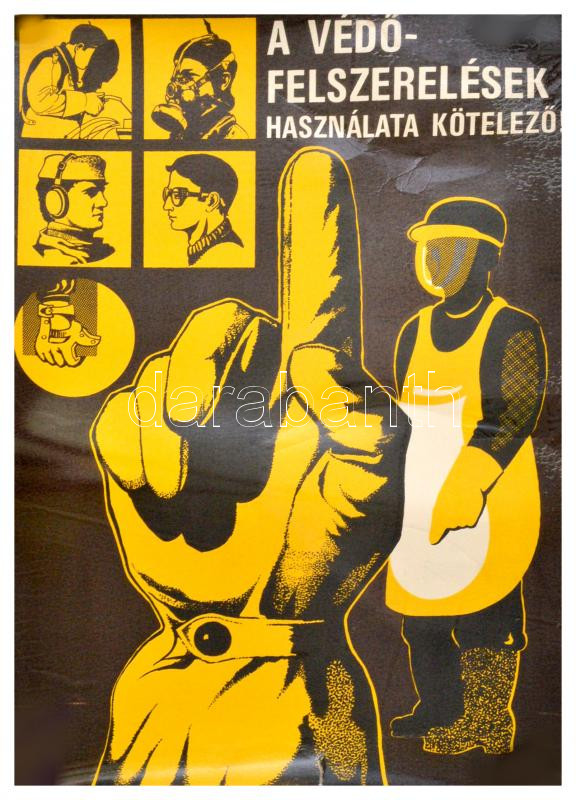 "A védőfelszerelések használata kötelező" - munkavédelmi plakát, szaka... https://www.darabanth.com/de/283-Fernauktion/283.0/Andere-Sammelgebiete/Drucksachen~28/A-vedofelszerelesek-hasznalata-kotelezo--munkavedelmi-plakat-szakadasokkal-66x47-cm~II1422424