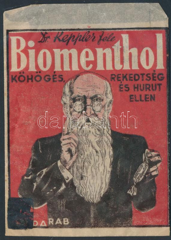 Dr. Keppler féle Biomenthol cukorka papírzacskó, gyártja Kaiser Frigye... https://www.darabanth.com/de/283-Fernauktion/283.0/Andere-Sammelgebiete/Drucksachen~28/Dr-Keppler-fele-Biomenthol-cukorka-papirzacsko-gyartja-Kaiser-Frigyes-ujpesti-gyogycukorka-g~II1221241