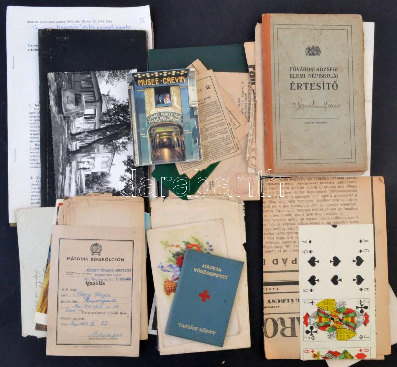cca 1900-1990 Vegyes régi papírrégiség tétel (fotók, képeslapok, oklevelek, leckekönyv, újságok stb.) / collection of mixed printed materials and documents