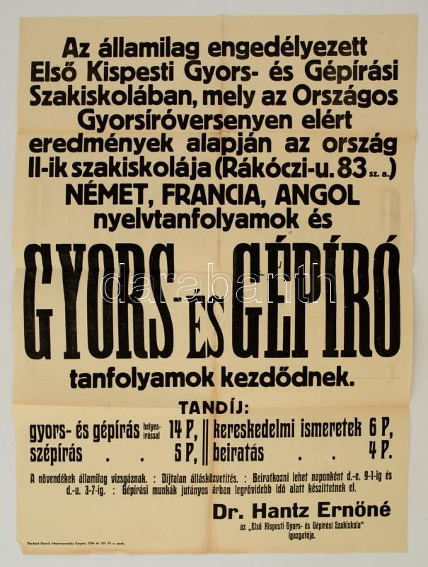 cca 1910 Az "Első Kispesti Gyors- és Gépírási Szakiskola" hirdetménye ... https://www.darabanth.com/de/283-Fernauktion/283.0/Andere-Sammelgebiete/Drucksachen~28/cca-1910-Az-Elso-Kispesti-Gyors-es-Gepirasi-Szakiskola-hirdetmenye-4C3974-filler-hirdetmeny~II1463259